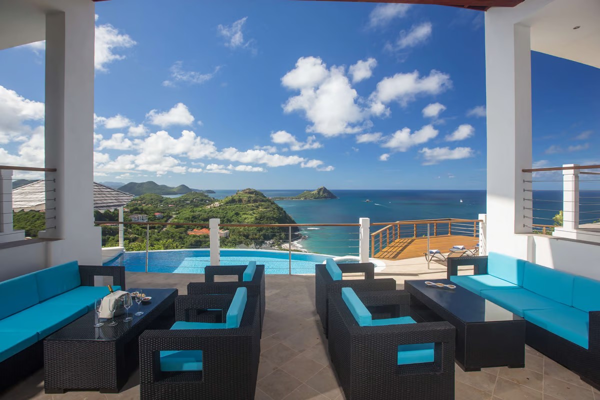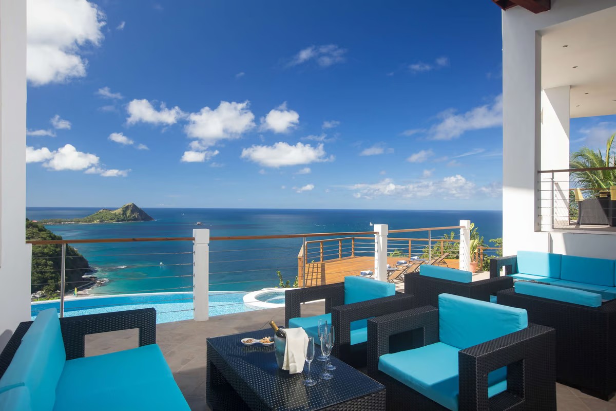 Nestled amidst the lush hills overlooking Cariblue Beach in St. Lucia, Akasha offers an exclusive sanctuary, a personal haven merely minutes away from an array of pristine beaches, vibrant restaurants, and lively bars. Immerse yourself in your own private slice of paradise where every moment is a celebration of tranquility and luxury.Indulge in the mesmerizing vistas that stretch beyond the infinity pool, revealing sweeping panoramas of the azure Caribbean Sea. Your gaze will be captivated by the iconic landmarks of St. Lucia, including the majestic Pitons, the historic Pigeon Island, and the bustling Rodney Bay, all painting a picturesque backdrop that seamlessly merges with the horizon.