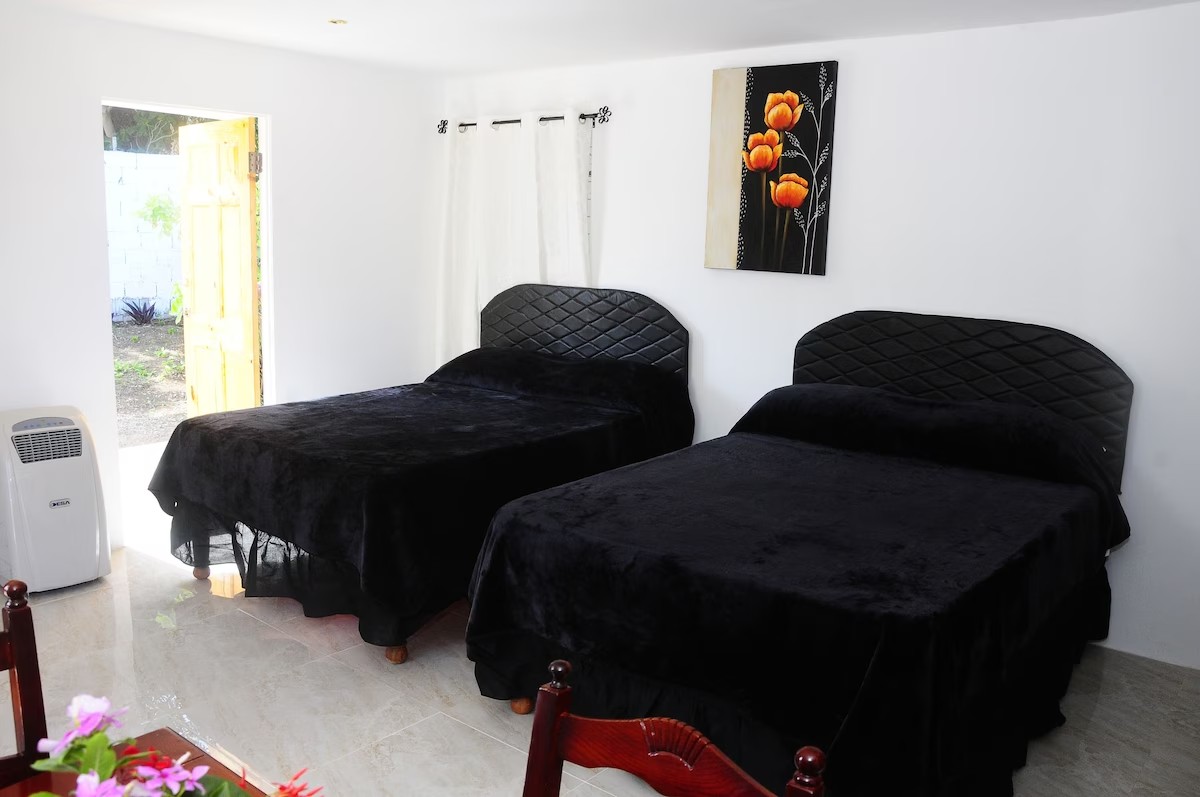 Nestled within the esteemed Mammee Bay Executive Estate, this property offers a spacious, airy room featuring two comfortable double beds, air-conditioning, cable TV, a sound system, and a dining area that comfortably seats 4 guests. The separate kitchen is fully equipped with modern amenities while the bathroom boasts a hot water shower, toilet, and washbasin, ensuring your utmost comfort throughout your stay. Plus, complimentary Wi-Fi keeps you connected to the world outside this serene retreat.