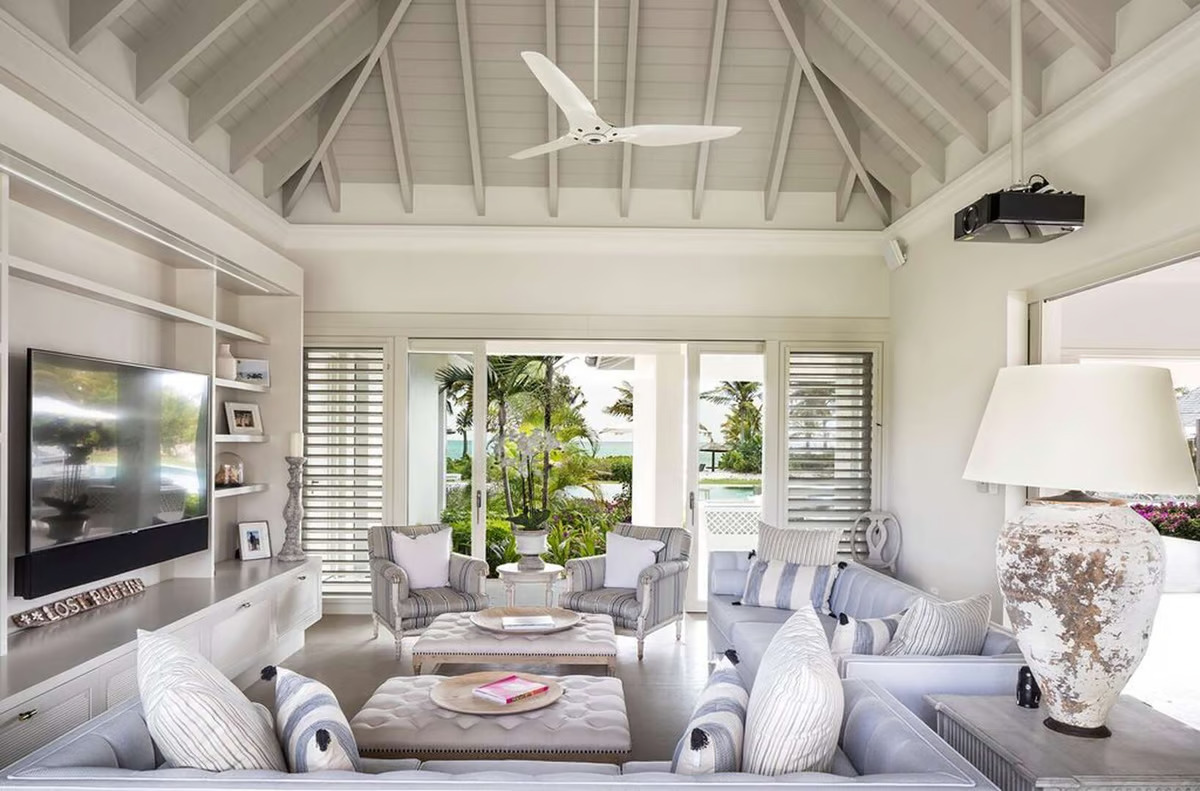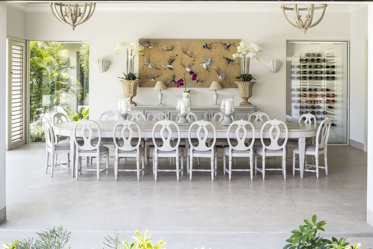 Lost Puffin derives its name from a whimsical tale—an adventurous bird, off-course and windswept, found its unexpected haven on Jumby Bay Island. Its interior, a blend of modernity and airiness, boasts expansive picture windows framing the lush landscape, seamlessly merging the indoors with the breathtaking surroundings.