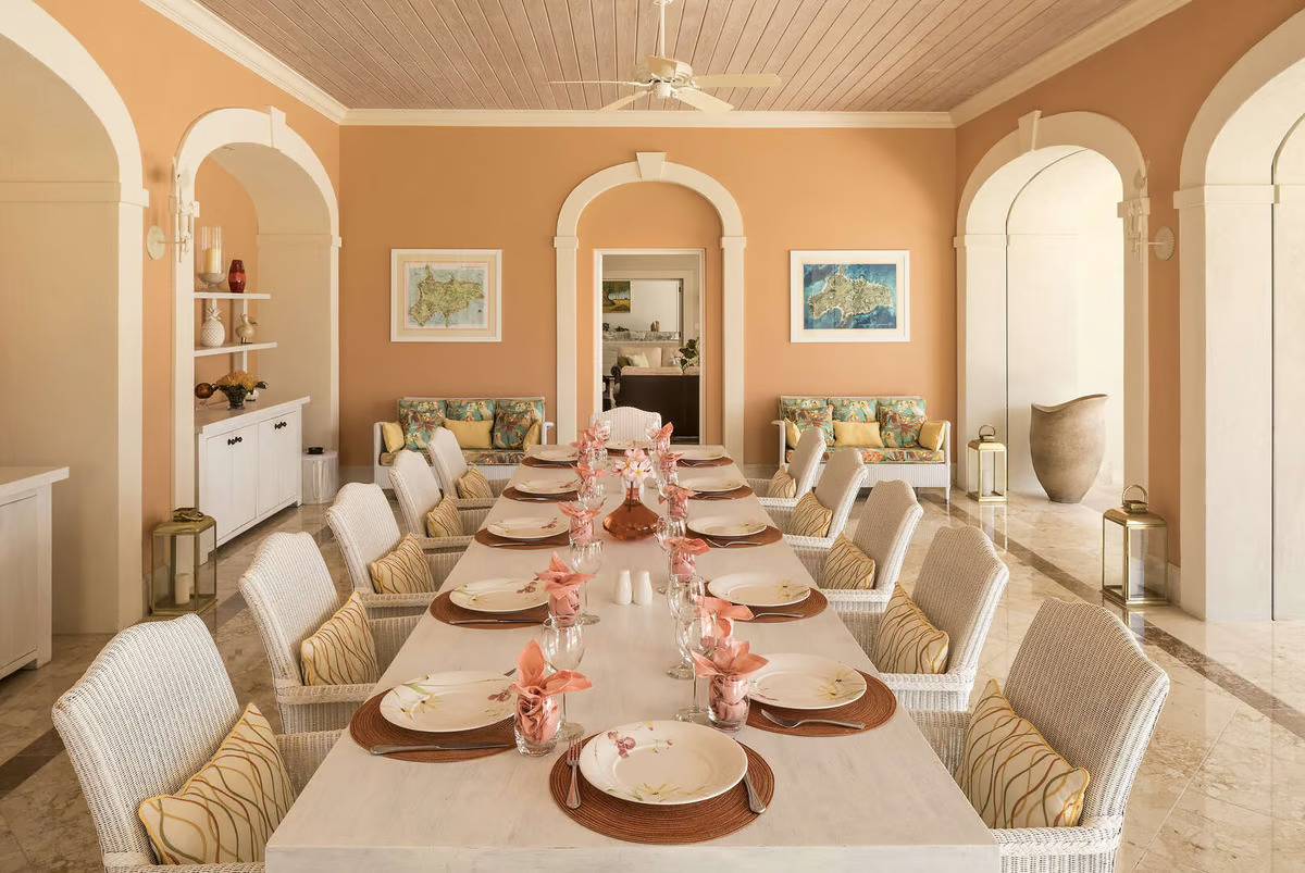 Jumby Bay Veranda: Nestled steps away from the water's edge, this heart-of-the-island retreat welcomes guests for breakfast, lunch, and dinner. Mornings begin with a sumptuous breakfast featuring a range of a la carte specialties and a continental selection boasting fresh breads and pastries. For lunch and dinner, savor the flavors of a seaside Italian trattoria, showcasing homemade pastas and locally sourced seafood and meats elevated by herbs and produce from Jumby Bay Farm. Operating hours: Breakfast from 7 AM to 10:30 AM, lunch from 12 PM to 3 PM, and dinner from 6:30 PM to 9:30 PM. Dress code applies.